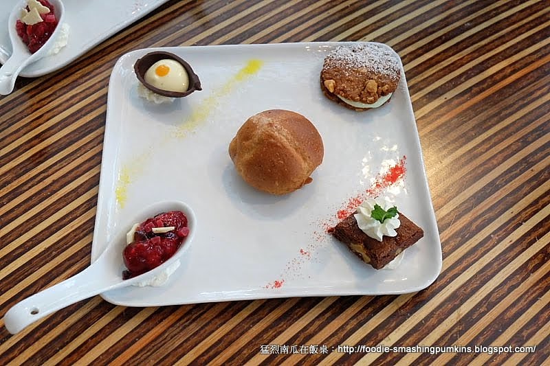 最後的甜品與芝士拼盤,不論是Baked Hot Easter Cross Bun,Coffee brownie and berry compote,到Chocolate Egg filled with mascarpone topped with apricot sauce,皆令人吃得心花放。
