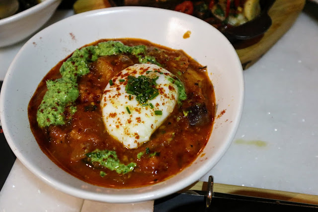 地中海雜菜,也還是茄子跟蕃茄這些必勝配搭,好吃是因為有一隻64度的溫泉蛋,把他拌到濃郁帶甜的醬汁中,沒什麼能勝過這吧?