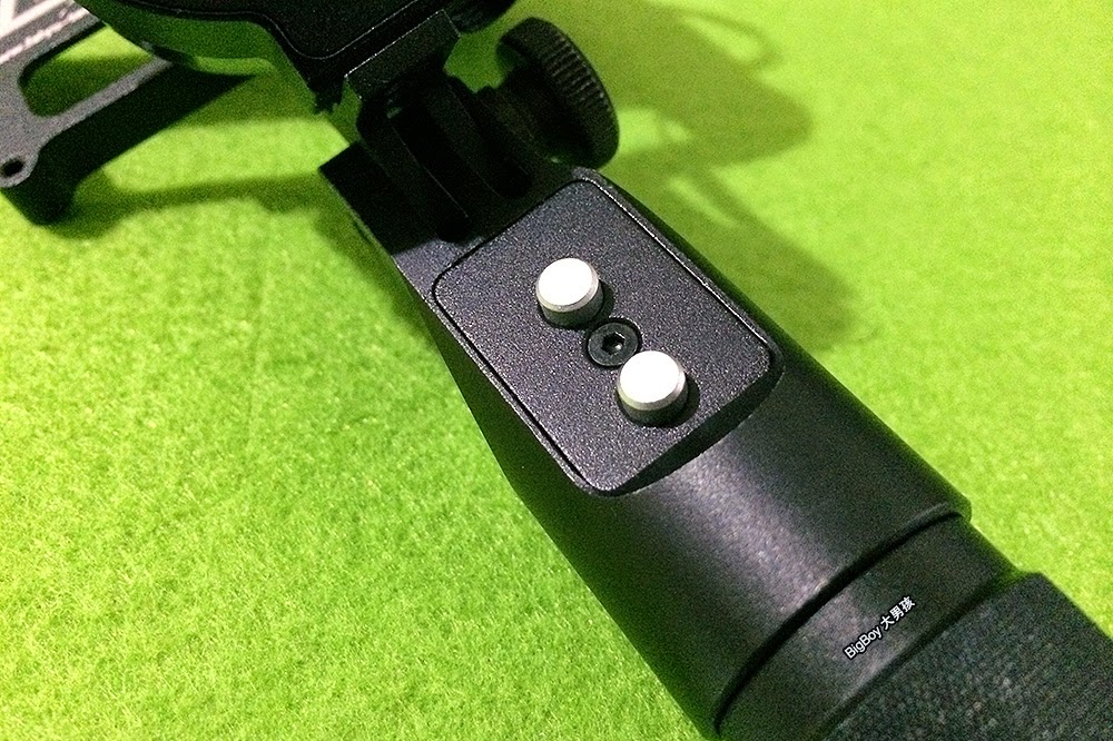 手柄由金屬製造,頂部有兩個馬達,所以會比普通固定手柄重,大約長20cm左右,由於沒有配送保護袋,要攜帶出街就要自己想想辦法。手柄位置有些紋理,加強了握持的穩定性,但如果能有海綿或軟膠,增加舒適感就最好不過了。