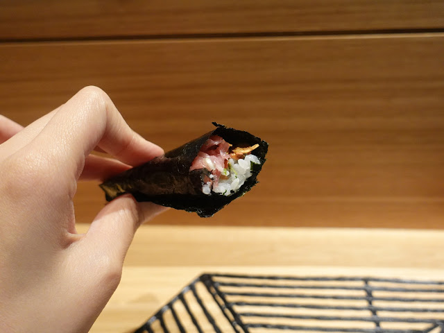 吃過壽司後,吞拿魚腩手卷是一樣的期待呢,卷物是待別之處是加了櫻花蝦和紫菜脆,