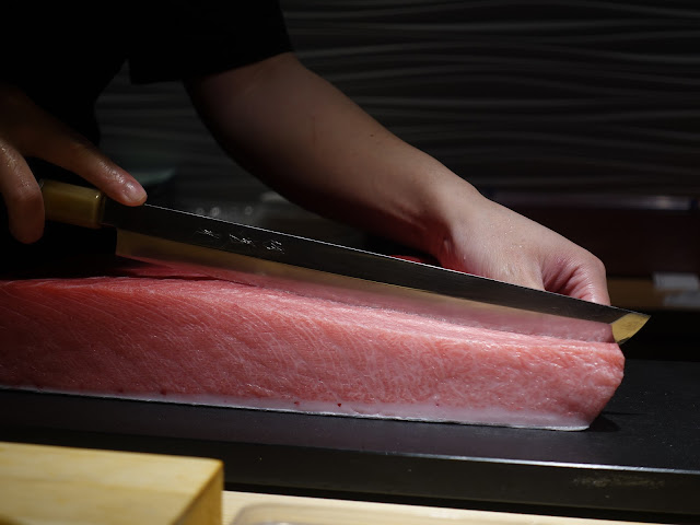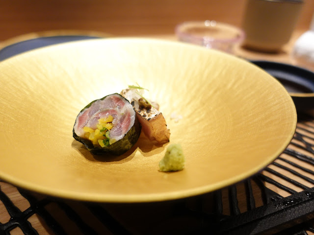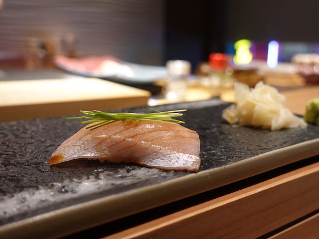 Toro總是令人期待的,還要是厚切的版本,以竹炭鹽作調味,配上紫蘇葉,油花香口和味道皆四溢,是很滿足呢。