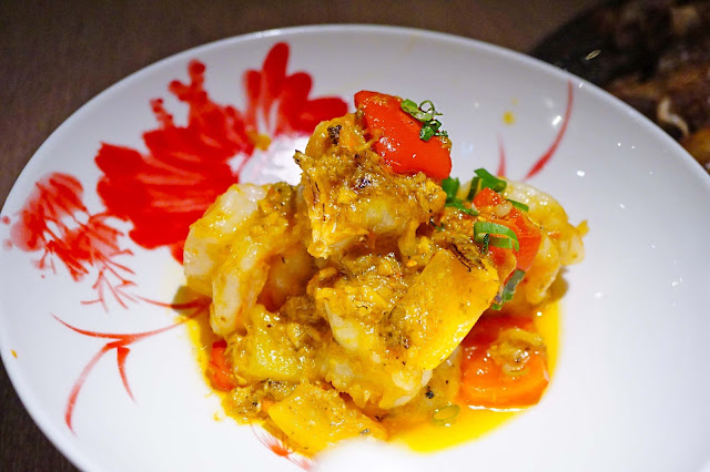 剛好在吃的時候巧遇是大閘蟹的季節,假如在港吃原隻大閘蟹,該要待明年了吧~能吃一道蟹粉蝦球也總算可以滿足了想要吃大閘蟹的心癮吧~大隻爽身的蝦球加上了蟹粉一塊炒,有效提升了不少鮮味~