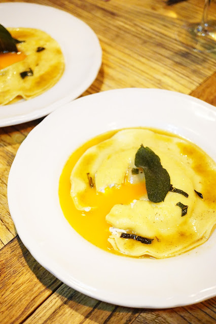 Soft duck egg ravioli