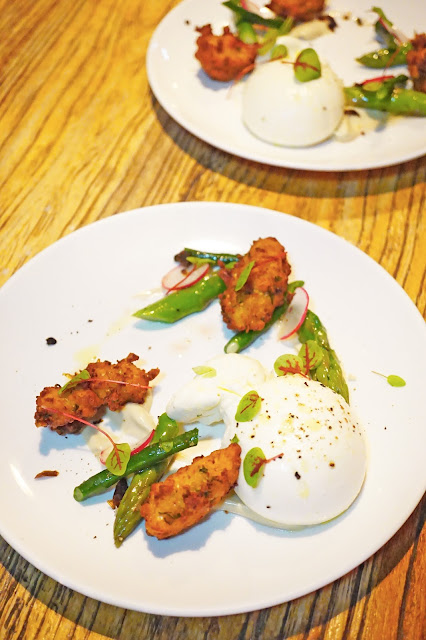 新鮮的原個水牛芝士,看起來和切上去都是水嘟嘟的,切開後的部分是甚有黏性,入口沒膻氣,配合蘿蔔,青豆,露筍等等,也真太好吃呢!