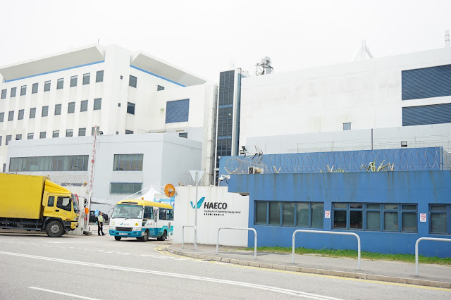 飛機停泊在香港飛機工程公司(HAECO) 那邊,進入前也要經過保安檢查呢。