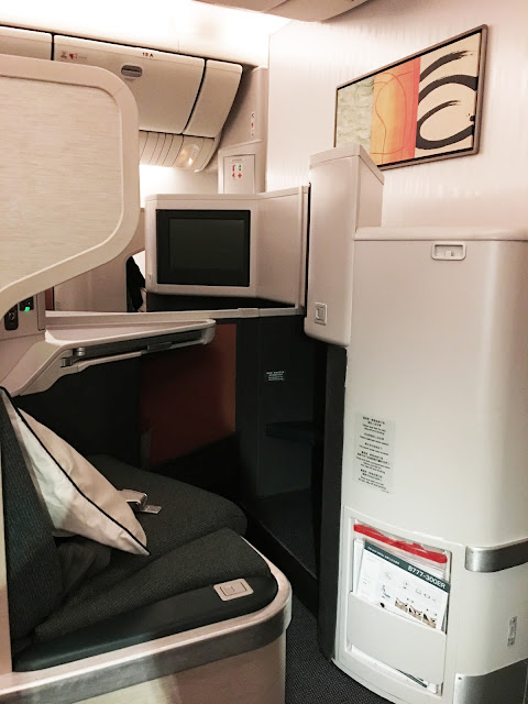 很值得分享的是座位還是flat bed,就是可以完全平躺的那種,座椅的配置是1-2-1的,就是說靠迎窗戶是單座位來的,私隱度也高喔。