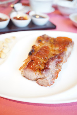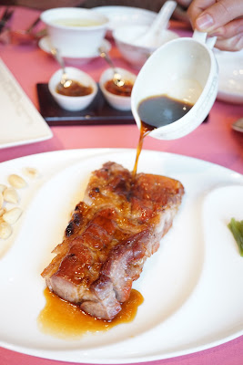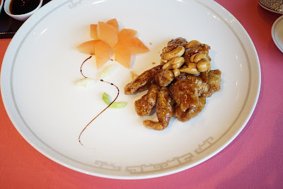 桂花梨黑醋脆豬肉: 光看已是一幅美麗的圖畫,脆豬肉的黑醋香氣撲鼻,一塊吃豬肉上的果仁是畫龍點睛的,吃過味道濃郁的肉類後再吃一件香學,正好作平衡之效, 只是稍嫌豬肉有點未如想像般脆身。
