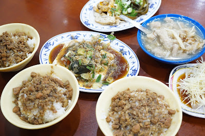 除了度小月外,也有吃到一間主打魯肉飯的小店呢,這是台灣當地的客人給我們介紹的,魯肉飯都是很便宜的,味道也不錯,但個人認為度小月的好像有比較出色呢。除了魯肉飯外,還有吃到魚翅肉羹,蒜泥白肉和豆干海帶魯蛋呢。