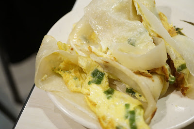 蛋餅: 雖然每人一分的厚餅蛋夾油條已經吃不完,但還是想要吃吃蛋餅是做得怎樣,味道是不過不失的吧。
