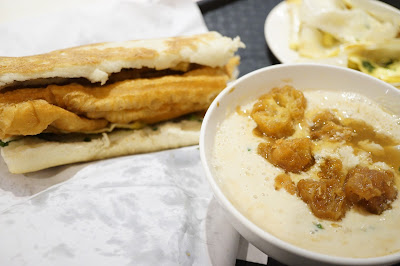 鹹豆漿: 印象中是沒有喝到鹹豆漿,想說特地點了一杯,但原來是一碗的呢,與其說是豆漿,其實倒不如說是鹹豆腐花,上面有幾件油條,是固體來的,可以用湯匙盛來吃。