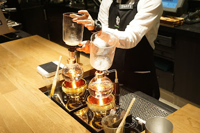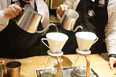 更特別的是咖啡是以稀有的Starbucks Reserve咖啡豆沖調的(Tanzania/ Vietnam/Costa Rica/Panama)。沖調方法也是獨有的,例如是虹吸和Black Eagle。