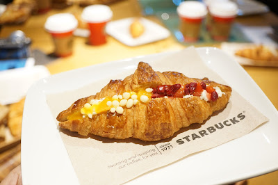 在食物方面,有三種口味的牛角包可是獨有的呢,包括了朱古力脆脆忌廉,芒果乳酪忌廉和馥莓忌廉,當天給博客們的特別版是有後者兩種的混合合味,大家是特別喜歡芒果乳酪忌廉,酸和甜的口味就是很相配喔!