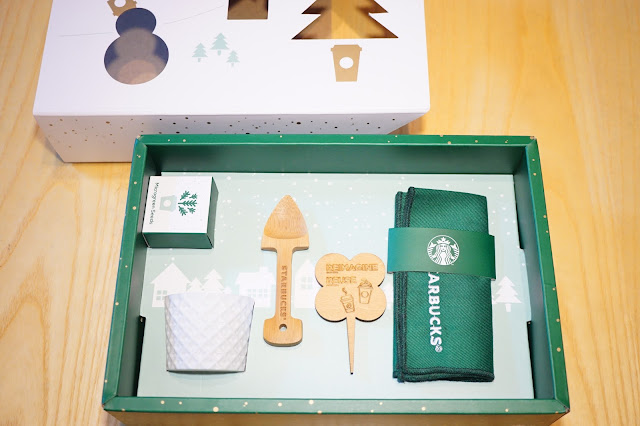 在聖誕佳節,Starbucks在201年便首次推出了星巴克種植套裝($128)可循環使用布甸杯,再用套裝內的種籽、種植器、小盆栽插牌、培植椰土、小鏟子和手巾,種出食用的芝麻菜或苜蓿。