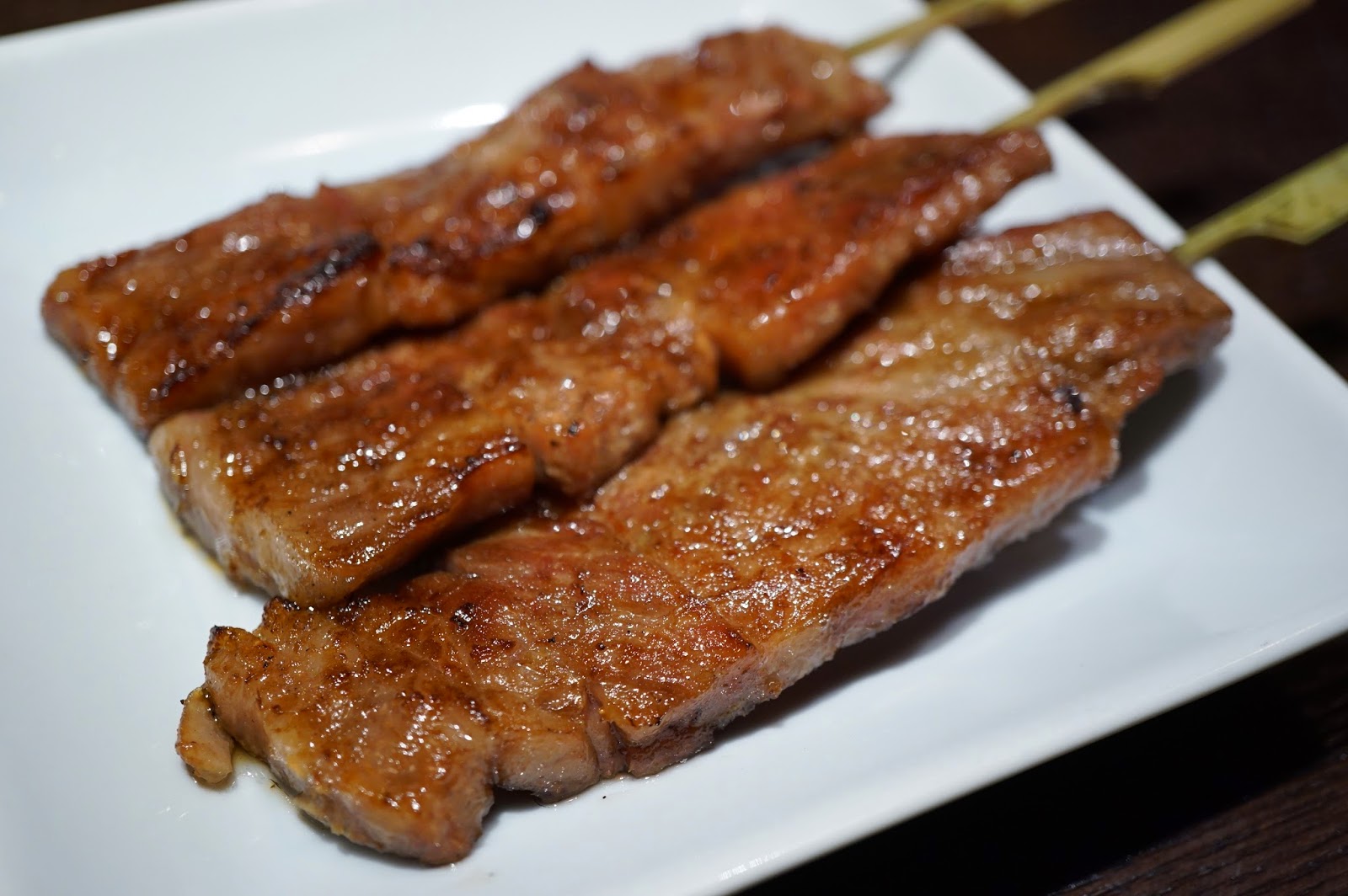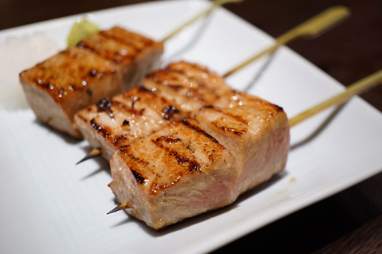 串燒: 杏鮑菇的外面燒得夠乾身,咬下去則是濕潤的。切成四四方方而小巧的吞拿魚也是滿有油香的。