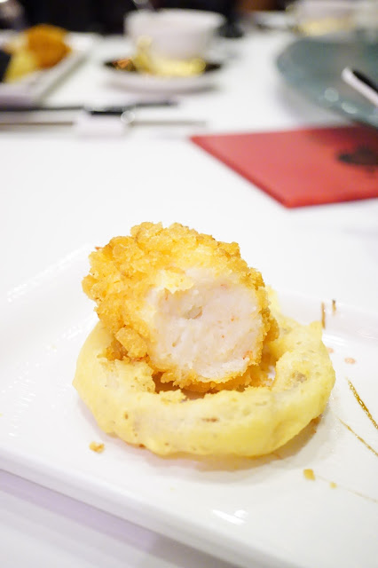 百花蝦多士:原本以為這種經典的小吃只有在老店才可吃到了,能在波士廳遇到它是驚喜的,還有是有水準的— 據了解時鮮蝦加上蝦膠而成,炸得夠乾身,不怎麼油膩的,棒。