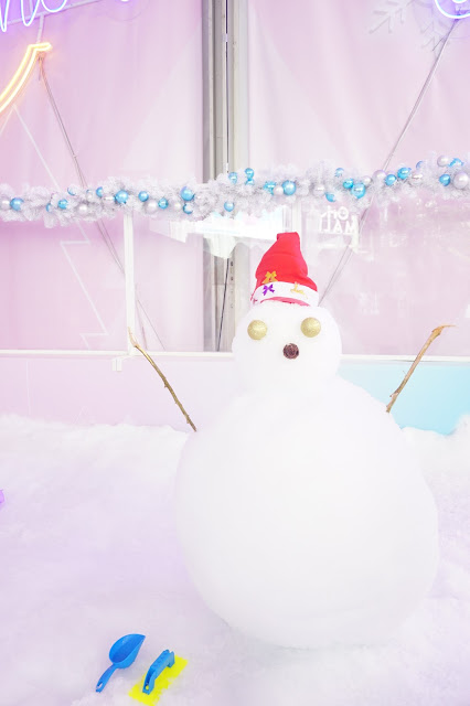 冰雪樂園內是一大片雪地,也有砌雪人和玩雪用具~ 打卡位有那棵很高的聖誕樹和霓虹燈牌,拍出來是帶點粉紅色的效果,挺美的~