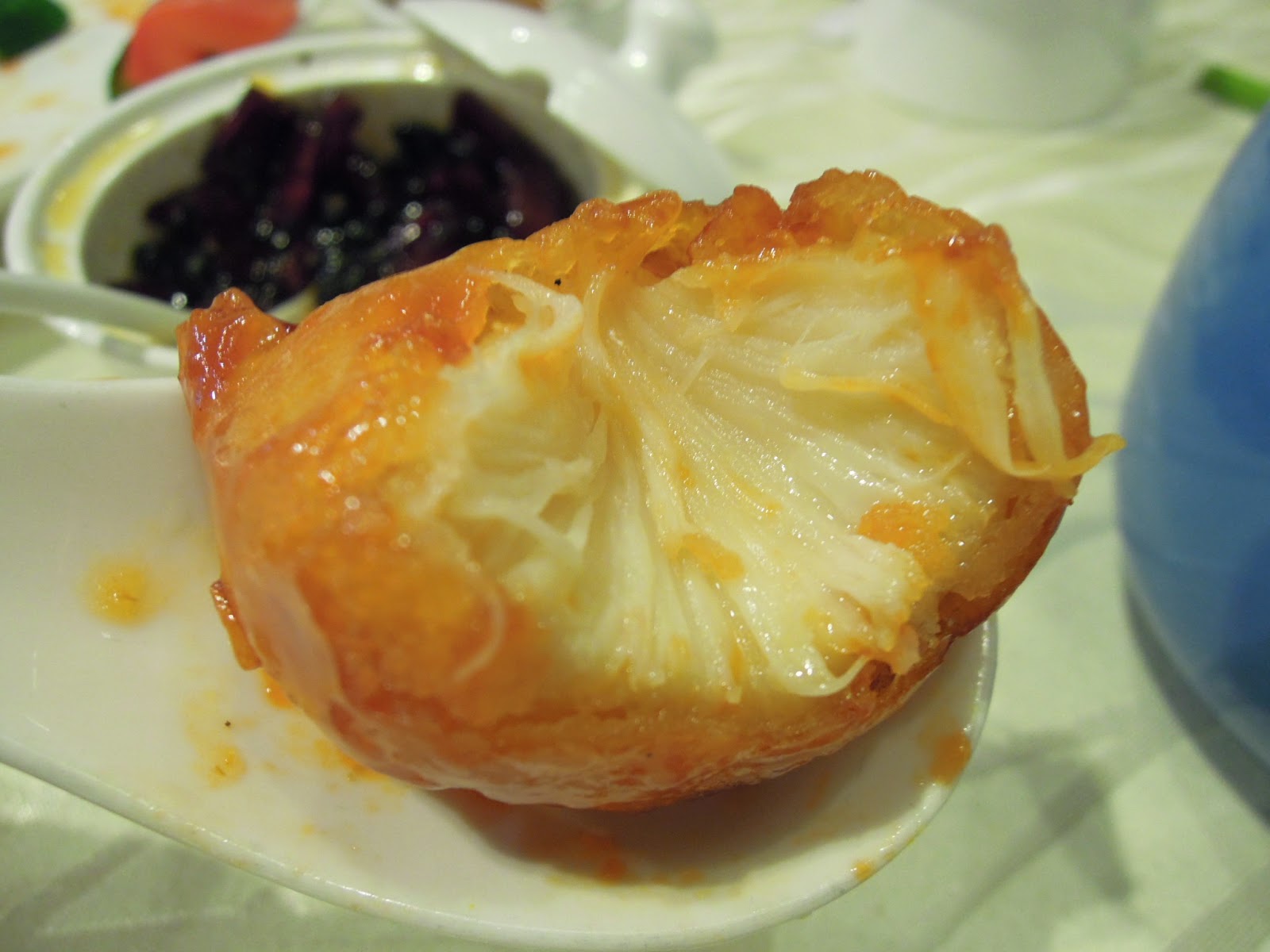 瓊枝玉液: 美麗的名字,原本是白色半透明的糖水,可惜我個人真的不太愛那股杏霜的味道,感覺是很輕怡的一道甜湯,好這道的人應該會挺愛的吧。