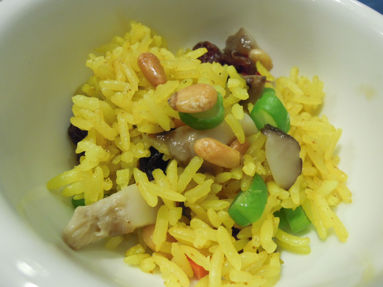 皇室南薑野米燉飯:這個飯堆砌出四四方方的形狀,也不難令人留下印象呢。入口是粒粒分明的黃薑飯, 感覺是有點印度風的,再加上有果仁,提子乾,是吃出了不一樣的感覺。