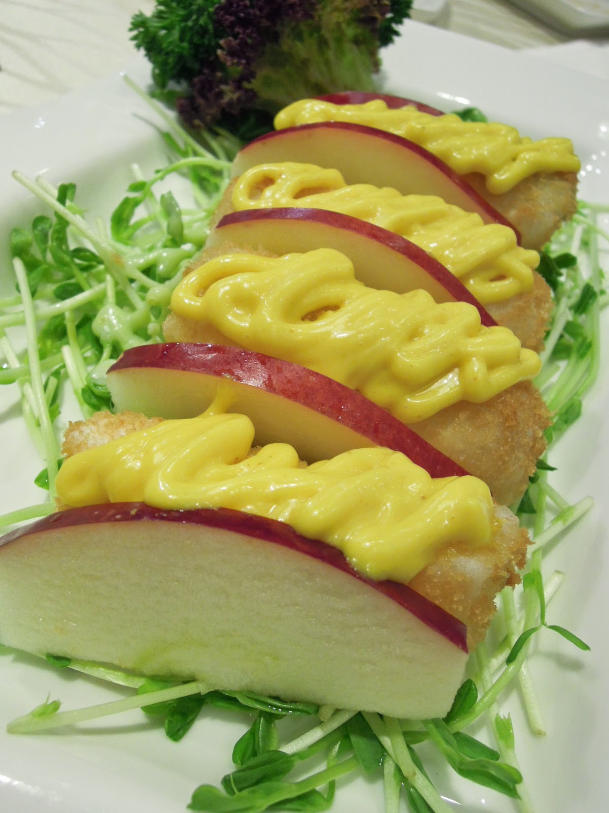 香酥芒果沙拉卷: 吃到這一道是漸漸感覺到飽肚感,帶點點酸性的芒果便發揮作用了,整體的配搭也是相當穩當的。