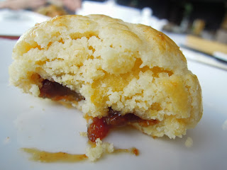 叉燒菠蘿餐包($36): 相當喜歡這個包子, 菠蘿皮的部分夠香脆, 很熱的叉燒餡溢出, 實在很喜歡, 值得要吃。