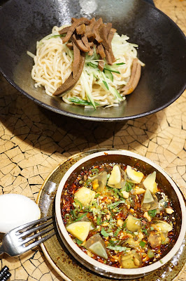 牛舌松花沾燃麵 ($88): 是頗為喜歡那帶辣皮蛋和麵所擦出的火花,麵的質感略富彈性,值得一吃呢。