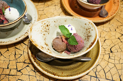 桃仁甜板 ($42), 四川花椒雪糕 ($52), 天椒酒碎朱古力雪糕 ($52): 最後吃到的甜點有幾款,其中一款是上次也有吃到的核仁甜板,外圍金香,中間的部分則軟糯,是水準穩定之選。後來吃到的是幾款四川風味的雪糕,味道相對同平常吃到的好像也是味道挺突出的呢,回想起那時候在沙田18吃到的那幾款中式雪糕呢。