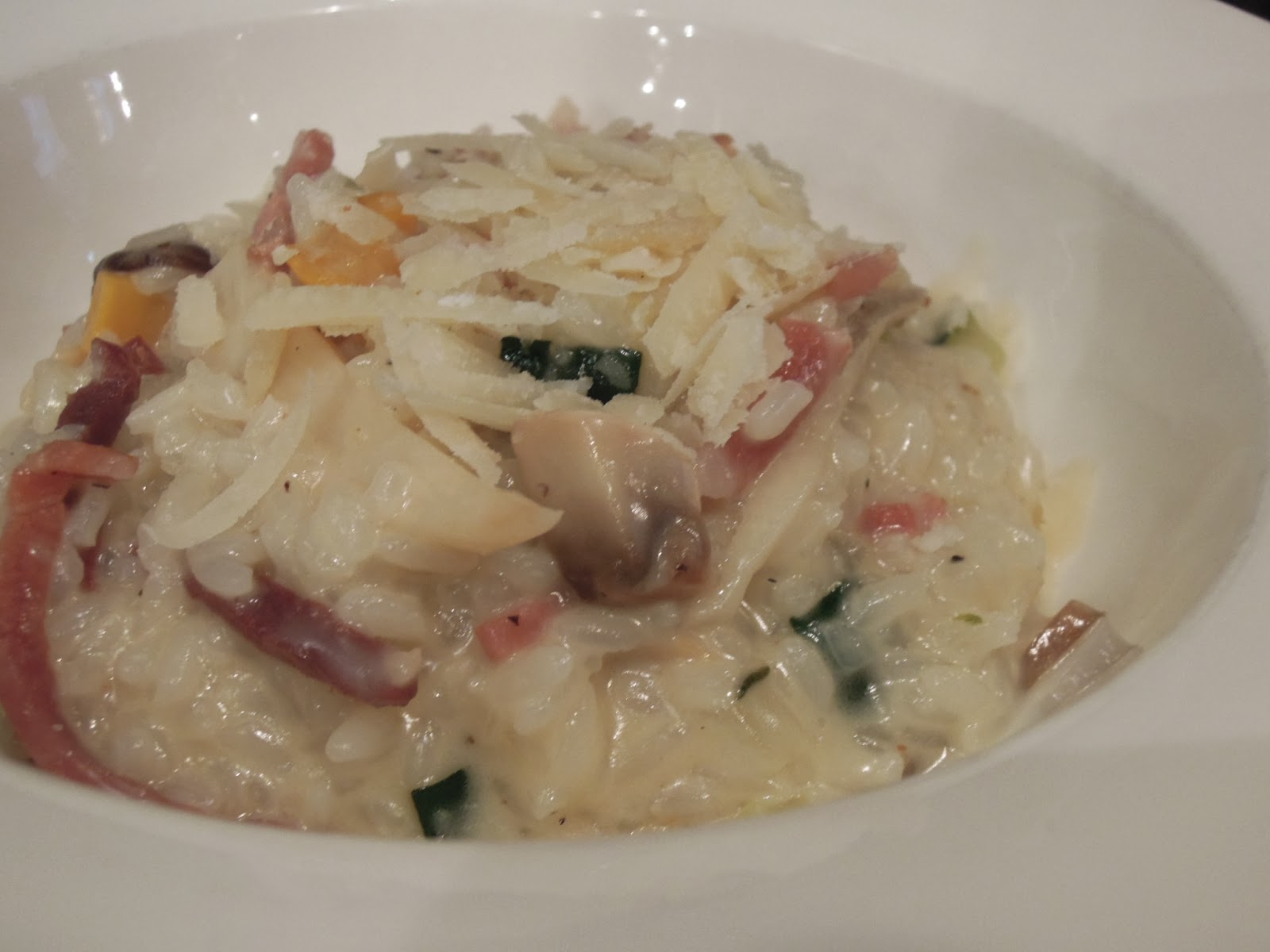 意大利火腿綠意瓜意大利飯: 這是三者中我最喜歡的, 就是很creamy。意大利飯的米芯不過硬,稍嫌其仔配料的味道跟質感不算是太突出, 但也可以吃吃看。