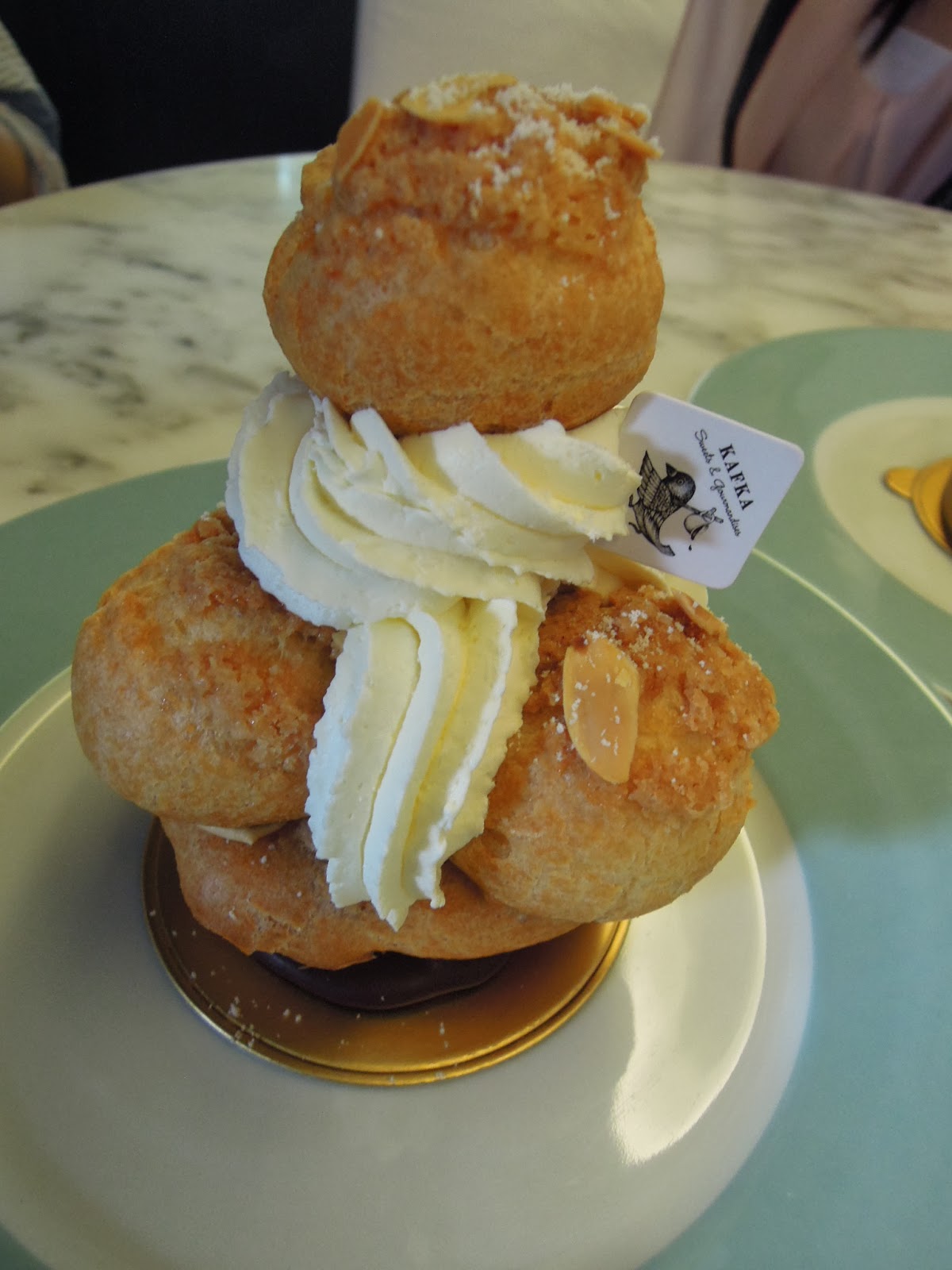 蒙馬特心情 ($38):不難從卡夫卡的餅櫃中看到一個個圓拱型的甜點, 甚麼顏色也有, 從眾圓形中, 跟據簡介選了一個, 就是有Creme Brulee的, 就是被形容為榛子下有法式焦糖,最有意境的是被形容為梵谷下的巴黎 (其實是甚麼呢...?) 其實這個入口不算是太驚喜的,是也不錯, 但甜度可以稍稍低一點是會更好的。