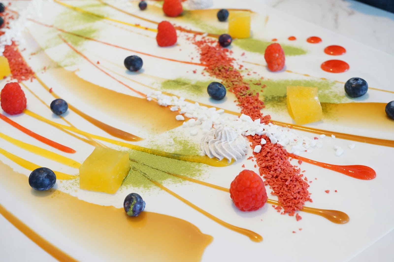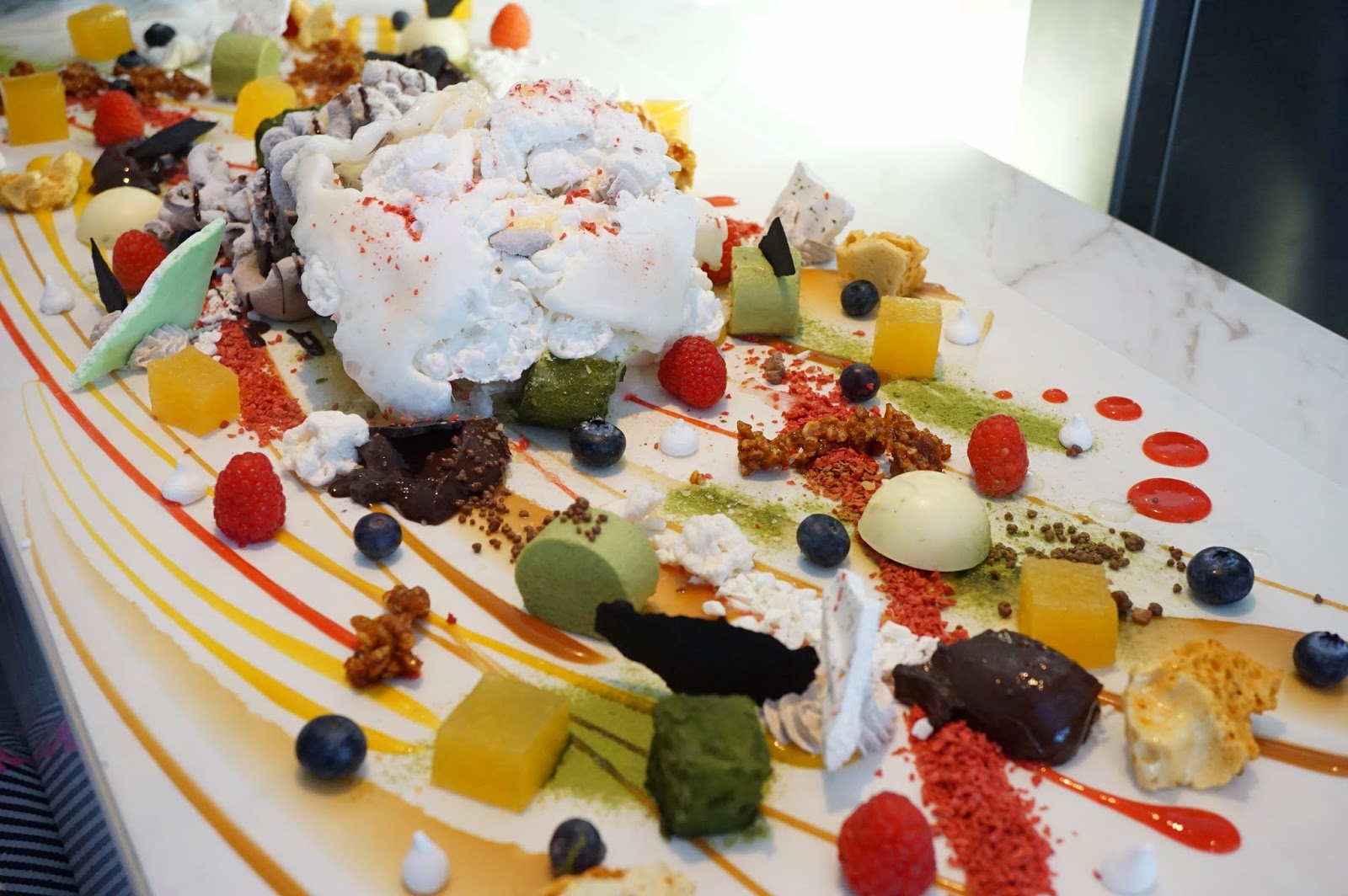 最後所見中間留有一個圓圓的空間,原來那是用來放分子雪糕的,是在眼前立即制作的,有兩款的口味,是稍等一下沒那麼冰才吃的。味道上是對辦的,質感吃起來有覺得是大顆版的粒粒雪糕呢。