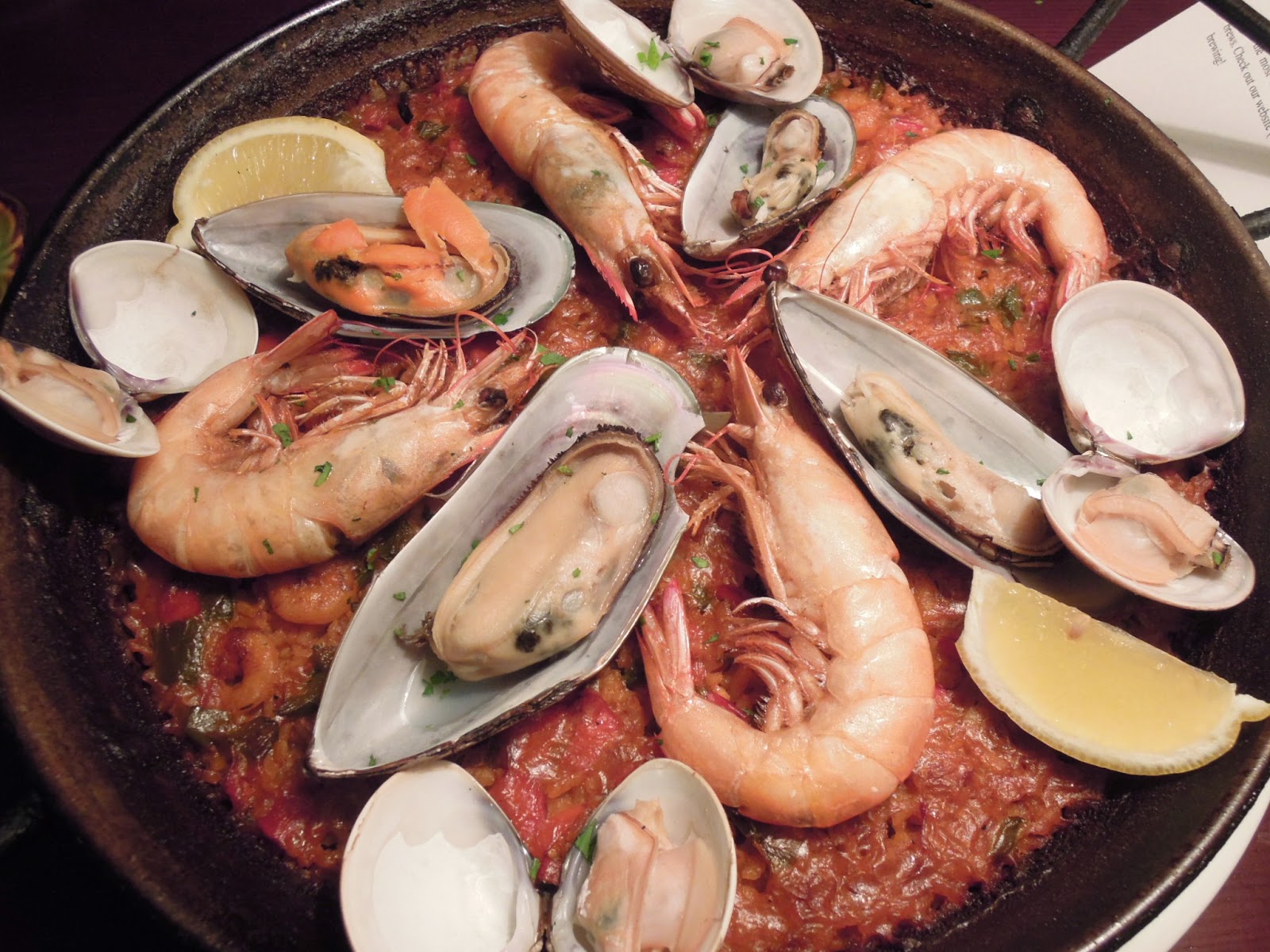 西班牙海鮮炒飯:這個西班牙炒飯也算是誠意十足,一貫的用了一個大鍋,放上很多種類的海鮮,用上的海鮮也相當的豐富,假如濕潤感再減低一點的話,相信效果會更理想吧。