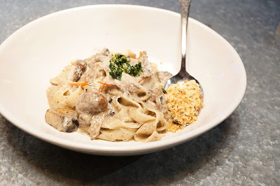 牛肝菌寬條麵: 假如是兩個女生的話,其實點兩款麵食 (少分量) 的話分享也會足夠的,是菌香豐富的一道,略嫌麵條彈性可加強一點; 分量吃多的話,是會稍為有點點膩口。