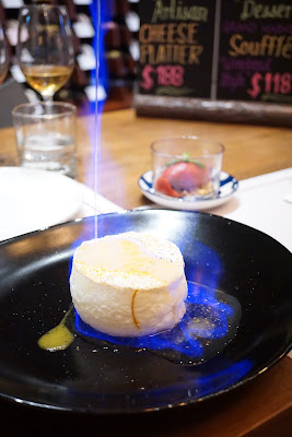 Special dessert Grand marnier souffle:最後吃到的甜品也是亮點,特別是視覺方面。廚師會在客人的眼前把藍藍的火光注進梳乎厘內,看得精彩。在味道方面,個人認為很好的是這款甜品沒什麼酒氣,甜度也剛好。