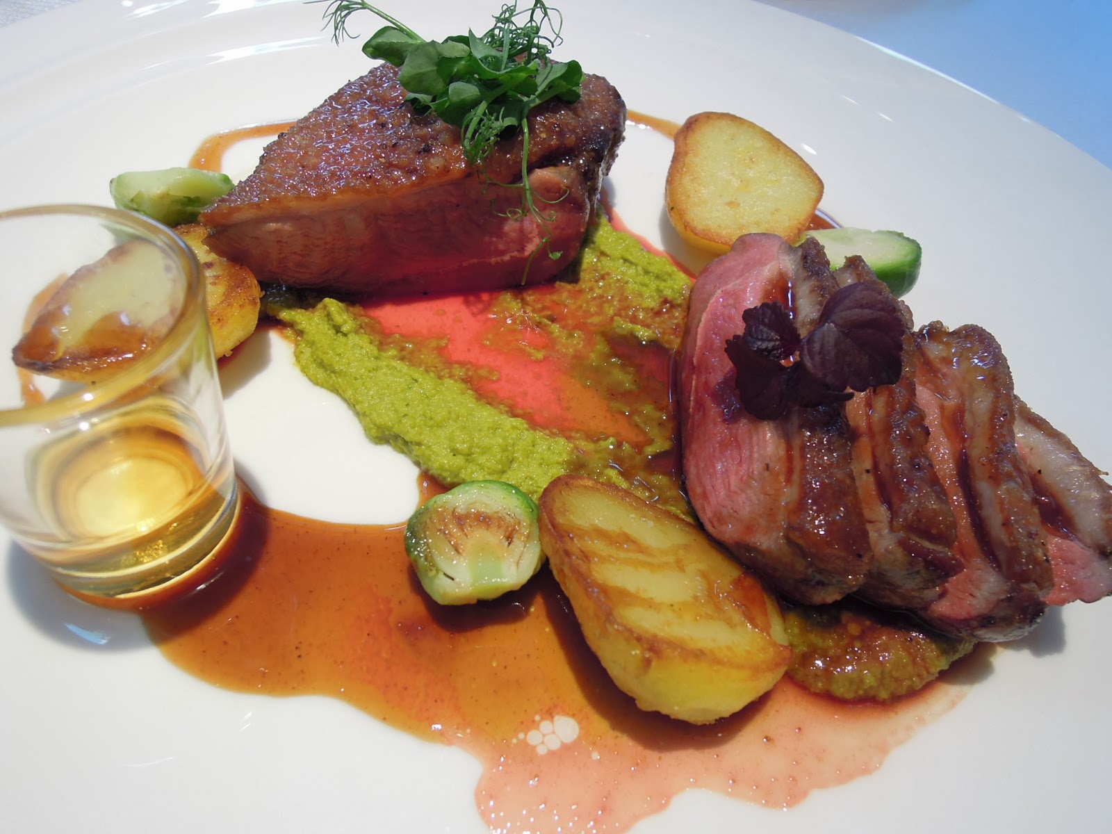 Roasted French challandais duck breast with kipfler potatoes, pistachio puree in 17 y/o hibiki whisky ($688): 價錢確是不便宜,但用上的是上好的材料---法國的血鴨,沒記錯的是一個低温的煮法,處理得剛剛好,是比平常吃到的顏色要好看,而且肉質很夠軟腍,喜歡的還可以把威士忌淋在肉上,勝在酒氣也不會過強,與鴨肉相得益彰。
