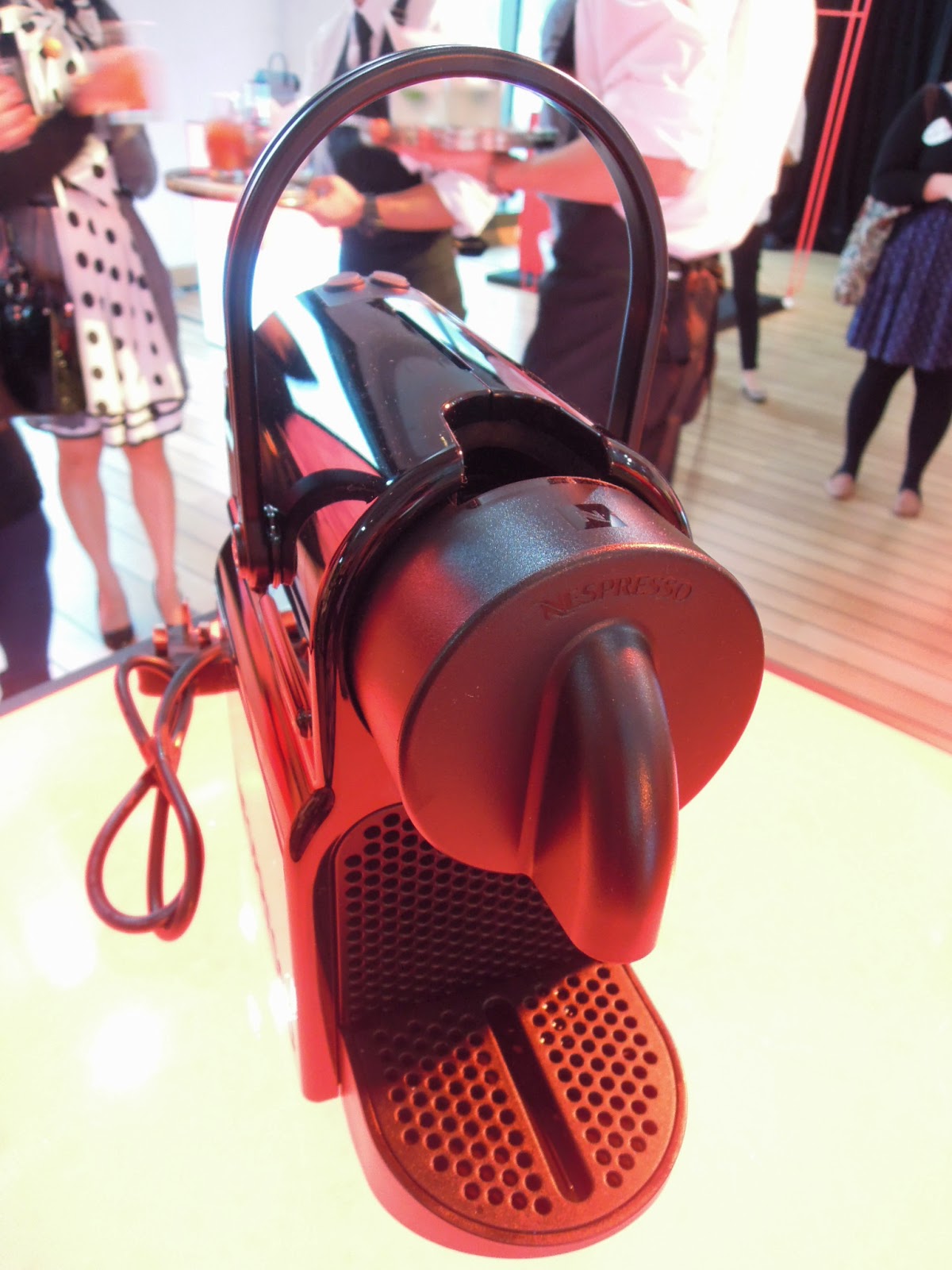 接住走到了似是家居的一角的裝潢, 左邊是蔚藍色的, 右邊是鮮紅色的, 正是其中兩款Inissia的顏色 (後來得知還有一款是黑色的), 個人喜歡蔚藍色的, 那種藍色很柔和, 而且來得相當特別, 相當討人喜歡, 據知這款蔚藍色的還是限量發售呢。