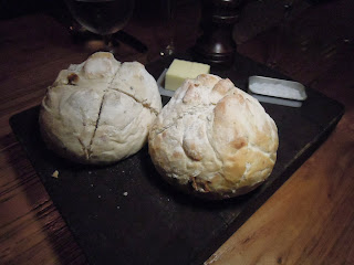 南瓜湯&麵包 (Roasted pumpkin soup):率先吃到的是麵包,外層猶有些脆身,麵包組織綿密而鬆軟,相當有水準,塗牛油吃,更佳。有點小可惜的是南瓜湯的質感跟味道都不怎麼對我的胃口。