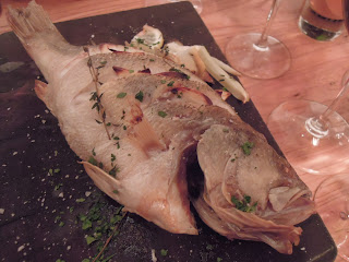 Whole roasted Sea bass with fennel and mixed herbs:在我吃過的英國菜中,而原條魚上菜的真不常見 (我吃過的英國菜中多是用魚柳的部分吧),但論貌相,味道和質感也相當有驚喜。鱸魚肉身雪白而嫩身,而且味道沒有雪水或淡而無味的感覺,好吃,是全晚我最喜歡的一道。