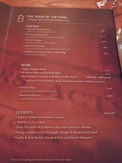 不知道大家知不知道灣仔有一幢歷史很悠久的建築物,內有一間吃英國菜的餐廳,也有酒吧的,那就是和昌大押的舊址,而那間餐廳就是The Pawn。曾經也有到過那邊喝飲料,確是很有令人忘記壓力的氣氛。這次就座的樓層相信是以吃晚膳為主的。