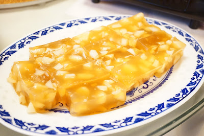 此宴壓軸的是—天麻茶配官窰馬蹄糕,相信最大的賣點是不過甜的馬蹄糕,為晚宴寫上圓滿的句號。
