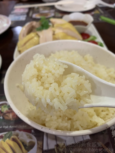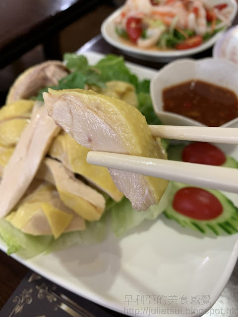 先來酸辣鳳爪做前菜,酸辣平衡,惹味令胃口大開,顏色配搭又鮮艷奪目,眼睛跟味蕾都在享受。半隻泰式海南雞份量可不少,注意是已去骨的,啖啖肉,脾位滑溜,胸肉一點也不嚡口,配上特製的泰式醬汁更有另一番味道。油飯很香,充滿香茅味,淨飯也連吃多啖。