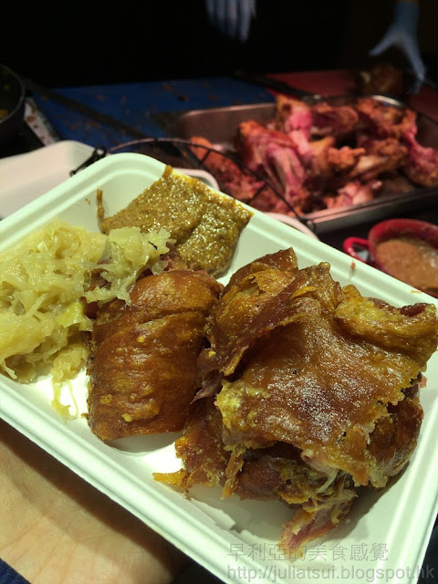 經過食尚水都後見到有指示,過橋就會到更多食品亭及啤酒街。How Cool Company 的雙層芝士烤菇菇味香濃,購買任何兩款還送秘製牛油果醬沙律,Harlans 的日式鐵板牛柳粒很惹味,Manecy's Studio Restaurant 的即溶巴馬芝士卡邦尼意粉及德國脆爆鹹豬手有水準,我們也吃得津津有味。