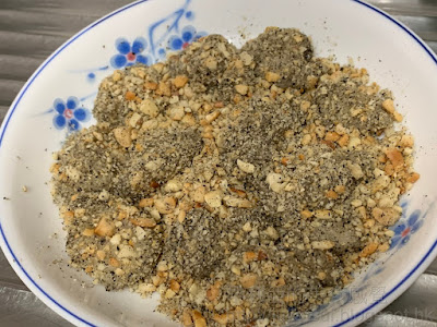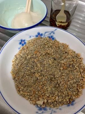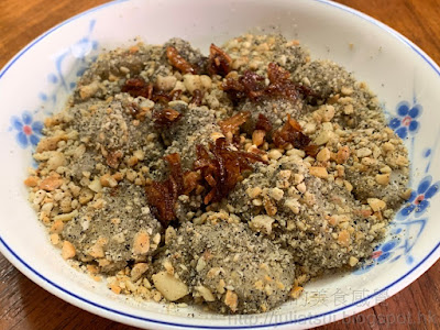 午飯後,帶了材料到媽媽家做甜品,一早烤香花生,炒香芝麻,磨碎加糖,已量好糯米粉份量,加水蒸熟便可。怎料媽媽竟拿出自家製香蔥油,加幾滴在成品上,香氣撲鼻,簡直錦上添花,提升層次,味道立刻昇華,多謝早利亞媽媽提議,靈感來自以往上環南北行外,有一檔潮州叔叔售賣即做麻糬,就是有這蔥油的味道,你有試過嗎?或許明天假期可以做一份同媽媽分享喔。