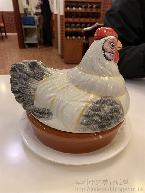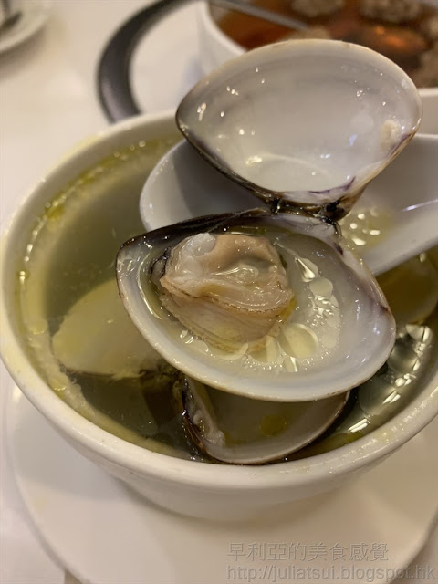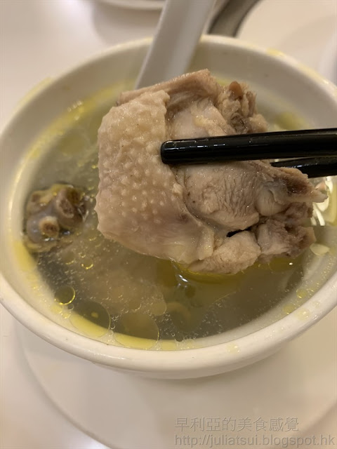 早利亞卻點了其他雞肉菜式,小盅燉湯蛤子雞湯,望落好似有點油了,但入口非常清香鮮味及甜。