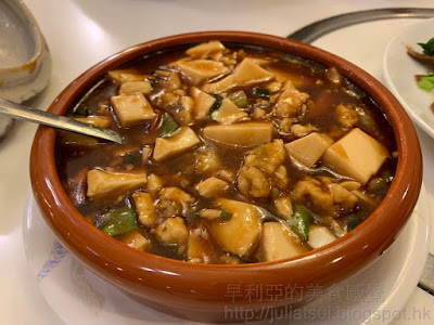 雞家豆腐是經典菜之一,幾乎每枱都會點,雞造型的蓋子很可愛,豆腐嫩滑,內有小雞丁,醬汁濃稠,加上辣椒提味,有麻婆豆腐的影子,微辣很好送飯,樸實不花巧的一道菜。