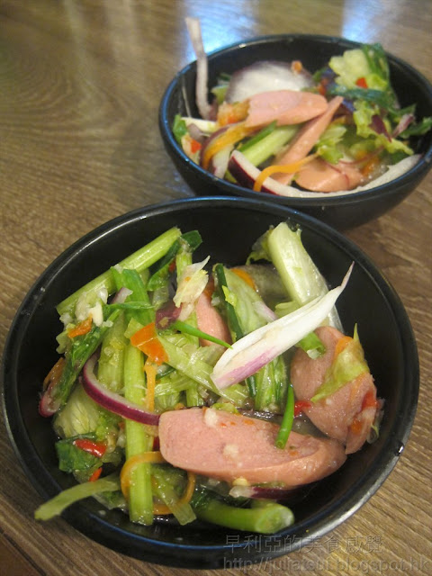 入座先來前菜,酸酸辣辣好醒胃。細心看看餐廳設計如一架火車,不少細緻位,頗有心思。曼谷車站,當然食泰國菜,我想食沙律,點了泰式柚子沙律,賣相討好,柚子多汁清甜飽滿,中蝦爽口,輕身醬汁微酸,加上炸紅蒽絲及椰絲,增加口感之餘亦豐富味道,真棒。