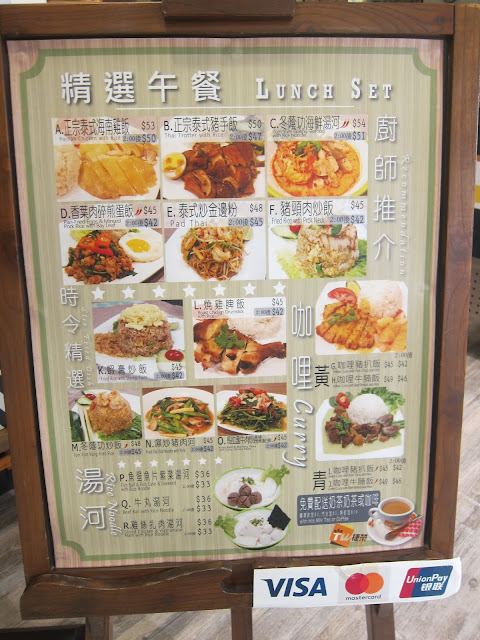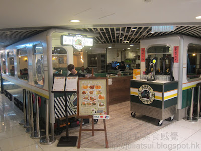 跟友人到德福商場買東西,不想在商場內食連鎖店餐,徒步向淘大商場一帶,突然見到這機乎被遺忘了的商埸-得寶商場,入內竟發現佈局有很多懷舊元素,店舖鐵閘、飛髮舖的招牌、路牌及地磚都有用心思。上到一樓見到一家像火車一樣的餐廳,名為曼谷車站,主打泰國菜,反正差不多下午一時,就在這兒吃個午飯吧!