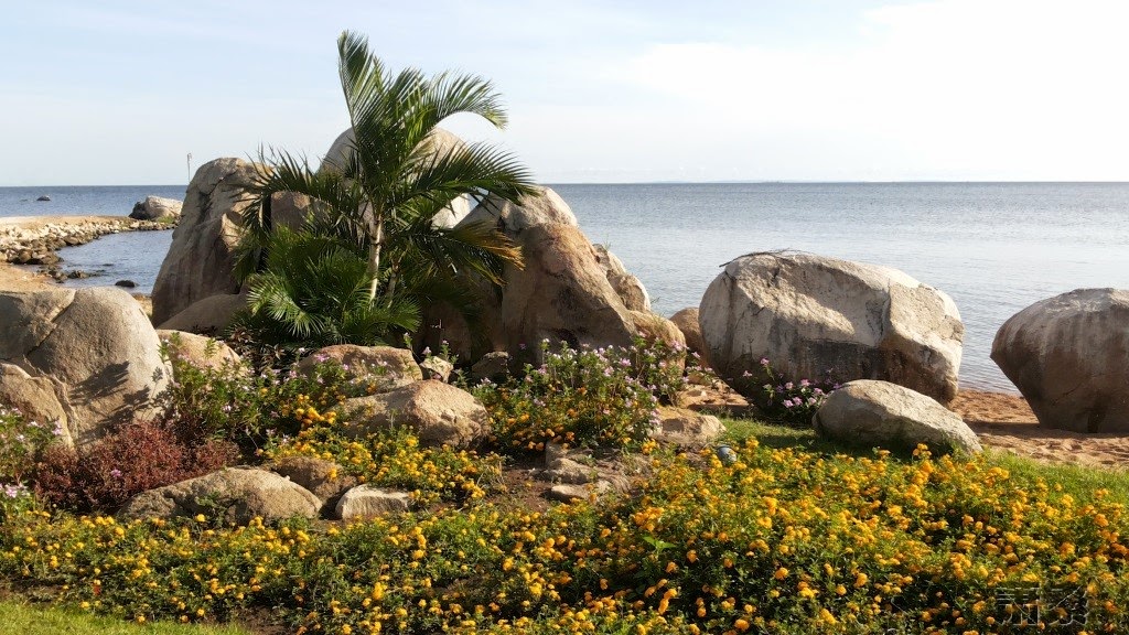 把行李都装上车后,我们就开始往第一站的方向前去 – Malaika Beach Resort。尽管车上的人都很早起床,但并没有一个显得睡眠不足的样子,反而一个个精神奕奕的,很兴奋地把路上的景观摄入镜头里面。很快的,我们就看到了非常醒目的大门口,写着Malaika Beach Resort。
