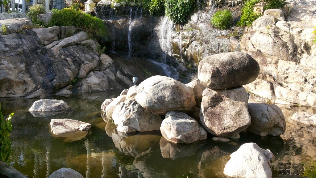 我们在酒店餐厅内吃早饭,餐厅的景色非常漂亮,简洁的风格,伴着古色古香的家具和原生态的装饰,颇有一番滋味。我最喜欢的其中一个景色是餐厅里的小瀑布,潺潺的流水冲击着岩石,那声音让人不自觉地放松自己。