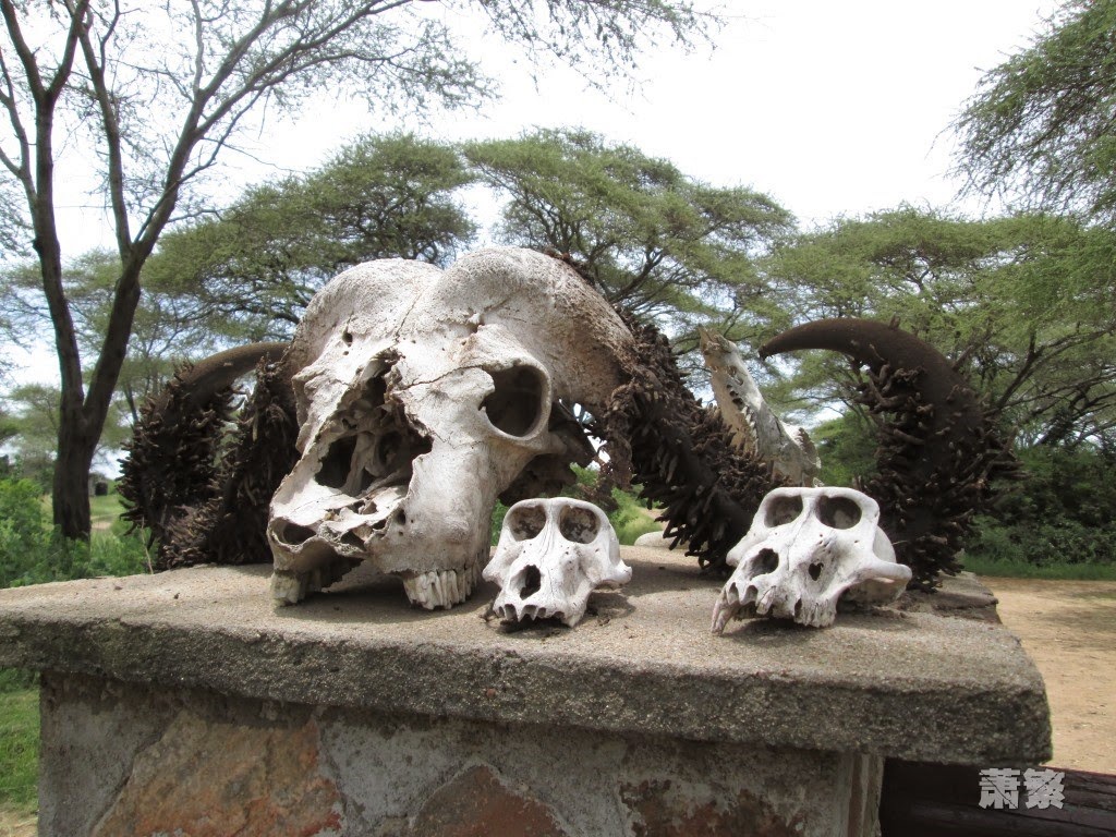 从Malaika Beach Resort到目的地需耗时2-3个小时,由于路程较远,中途我们停留在修建的犹如悉尼歌剧院的Nbaka National Park Lodge吃午饭,这里距离Serengeti National Park只有不到10分钟的车程。 好不容易终于到了Serengeti National Park的入口处,入口处的铁门上放了各种不同动物的骷髅头,看起来其实真的挺可怕的。