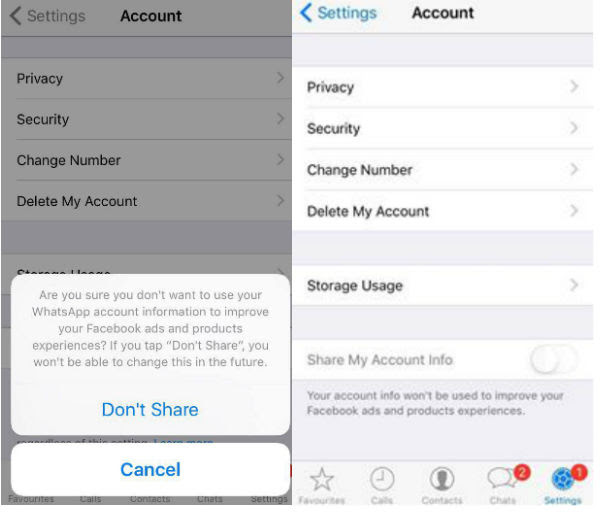 若已經錯按同意條款的話,仍然可以在30天之內,進入whatsapp的設定畫面,按入賬戶的「分享我的資訊」內關閉,這樣亦可以刪除該功能。