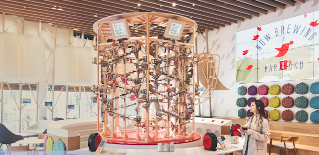 直到12月25日聖誕當天,當大家走入雀巢咖啡原宿店的時候,就會看到這個高至天花的巨型音樂裝置。當客人透過雀巢的手機應用程式選購咖啡後,機器就會開始根據指示自動沖調飲品,同一時間,巨型音樂裝置亦會啟動,奏出符合客人心情的聖誕音樂。